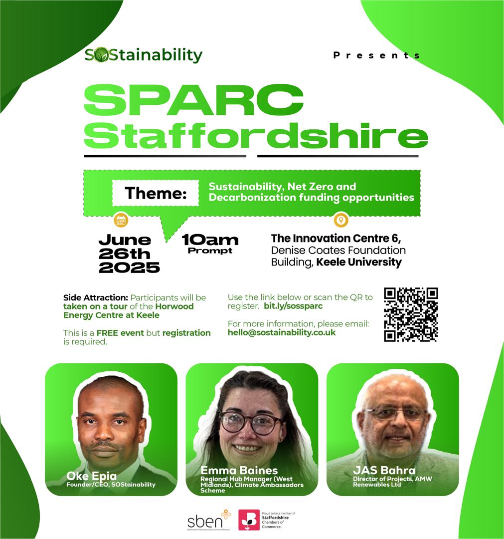 SOStainability is hosting the SPARC Staffordshire event to engage stakeholders in business, government, non-profit, and the academic community in reflecting on Staffordshire’s sustainability journey as a place.